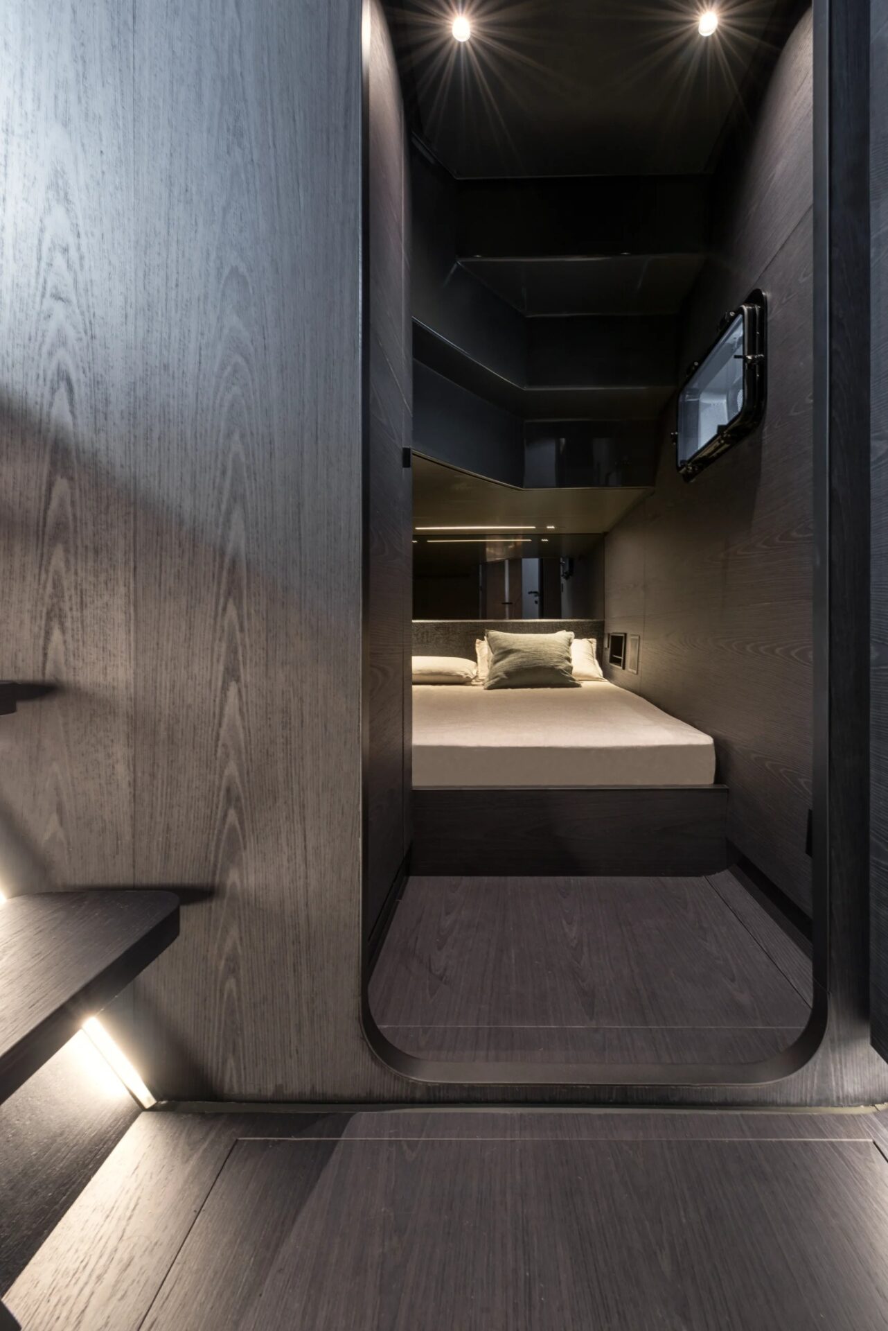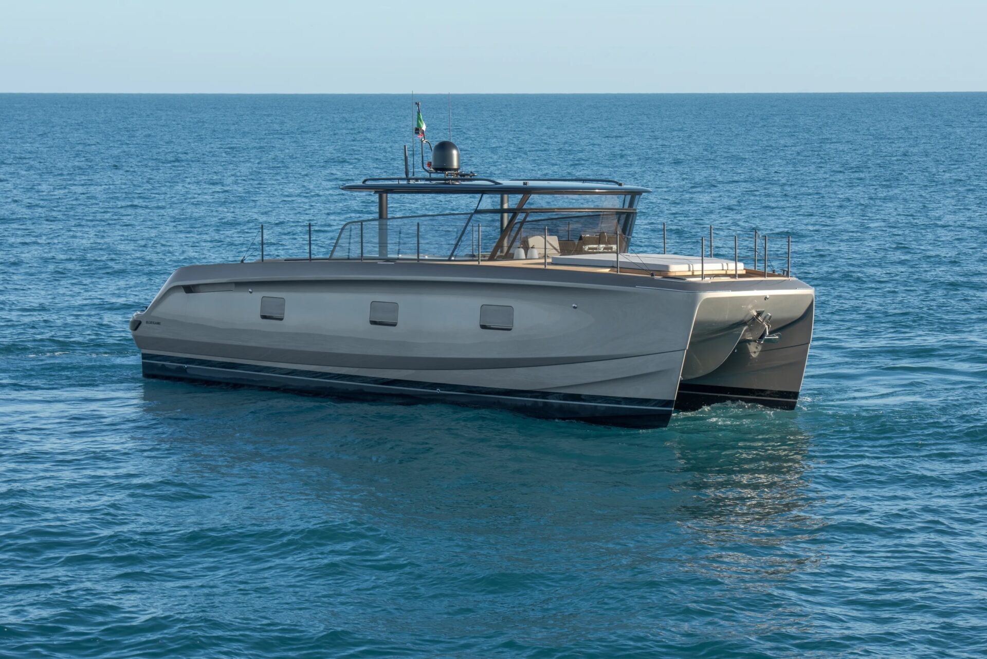 Das Vorreitermodell der neuesten BGF-Reihe ist der BGF45, ein 45 Fuß langer Katamaran, der die Zukunft des Yachtsports neu definieren soll. Dieses Modell basiert auf der Spitzentechnologie und dem Know-how des BGH, dem wasserstoffbetriebenen Begleitboot mit Tragfläche, das den bislang ultimativen Ausdruck von Nachhaltigkeit darstellt. Der BGF45 verfügt über ein zwischen seinen beiden Rümpfen integriertes Tragflächensystem, das durch die Reduzierung des Luftwiderstands Geschwindigkeit und Kraftstoffeffizienz steigert und gleichzeitig Stabilität und Bedienkomfort gewährleistet.