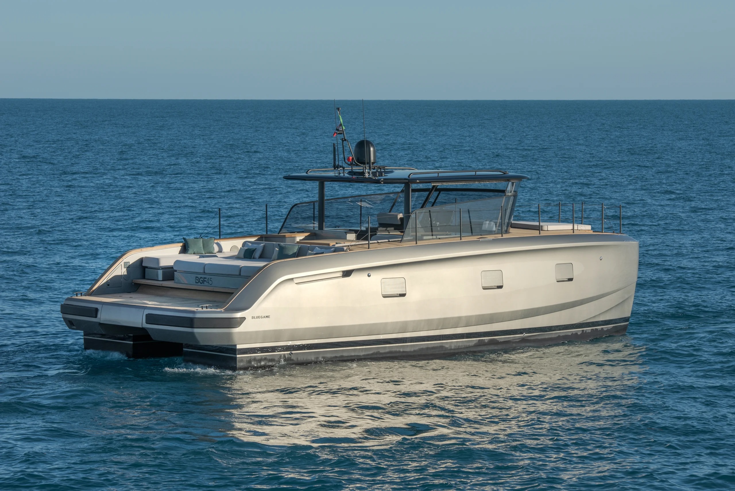 BGF45 reduziert den Verbrauch  (um bis zu 30 %), bietet unübertroffenen Fahrkomfort selbst bei hohen Geschwindigkeiten  (30–35 Knoten) und bietet für eine Yacht dieser Größe außergewöhnlich viel Platz an Bord: zwei Kabinen plus eine dritte, vielseitig nutzbare Kabine für den Innenbereich sowie ein geräumiges Sonnendeck und einen eleganten Wohnbereich am Strand für den Aufenthalt im Freien. Bluegame bringt eine Yacht auf den Markt, die Leistung und Nachhaltigkeit auf einem noch nie dagewesenen Niveau vereint. Mit ihrer innovativen Technologie und dem geräumigen Design setzt die BGF45 einen neuen Standard in der Branche.