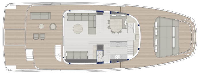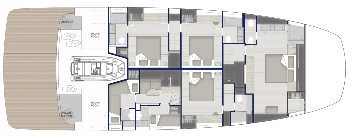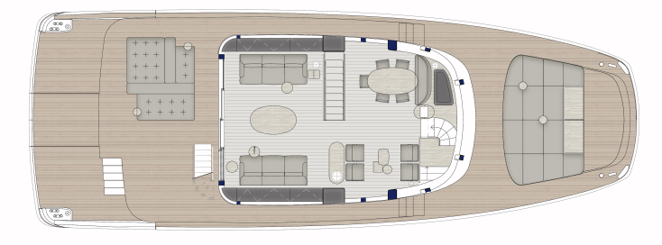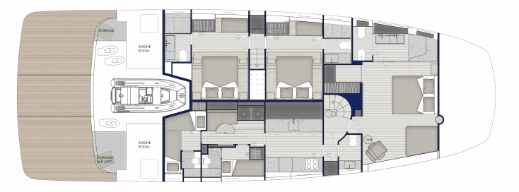Das BGM75, erstes Modell der Baureihe, ist kein Neuzugang im Segment der Mehrrumpfboote, sondern bildet ein neues, paralleles Segment, das sich von den bisher auf dem Markt befindlichen Mehrrumpfbooten abhebt. Entsprechend der Positionierung der Sanlorenzo Group ist es in erster Linie eine luxuriöse, prächtige Motoryacht, die „zufällig” nicht einen, sondern gleich zwei Rümpfe hat. Doch nicht einmal aufgrund dieses Merkmals kann es mit allen auf dem Markt befindlichen Katamaranen verglichen werden. In erster Linie, da sich die Form des Bootes schon auf den ersten Blick von der „kastenförmigen” Struktur eines Katamarans unterscheidet, und dies dank der reduzierten Breite zu Gunsten eines verhältnismäßig großen Schiffes, das einem Einrümpfer ähnelt. Dies ermöglicht es, dass die horizontalen Flächen zwischen den zwei Rümpfen miteinander in Verbindung treten und ein einziges Volumen schaffen, als wäre es ein Einrümpfer, allerdings mit größeren Bereichen und der Möglichkeit, eine Eignerkabine von außergewöhnlichen Proportionen einzurichten. Bei traditionellen Katamaranen ist diese Anordnung nicht möglich, da hier die beiden Rümpfe zu weit auseinander liegen, um diese Verbindung herzustellen, und separat innerhalb der beiden Rümpfe angeordnet sind. Auch vom Heck aus gesehen ist das BGM75 dank des Längen-Breiten-Verhältnisses nicht mit traditionellen Katamaranen zu vergleichen, deren zwei Rümpfe deutlich sichtbar voneinander getrennt sind. Der ästhetische Aspekt ist ein eleganter und ausbalancierter Einrümpfer, und der Zwischenraum zwischen den beiden Rümpfen, der bei traditionellen Katamaranen üblicherweise nicht genutzt wird, verbirgt eine Garage für das Beiboot, das vollautomatisch ins Wasser abgelassen werden kann. Die reduzierte Breite gestattet es auch, das BGM75 zwischen Einrumpfbooten anzulegen und nicht zwischen wesentlich größeren Superyachten, da hierbei das Längen-/Breitenverhältnis unproportional ist. Der USP (Unique Selling Proposition) des BGM75 umfasst viele unterscheidende Elemente, wobei die Suche nach effektiven, nachhaltigen Lösungen, insbesondere im Hinblick auf die Verringerung des Verbrauchs, das wichtigste ist. Genau bei diesem letzten Aspekt bringt die Werft mit diesem Modell ihre ganze Forschungs- und Entwicklungskapazität zum Ausdruck: Bernardo Zuccon und Piero Lissoni, weltbekannte Designer, die an der Gestaltung vieler der größten Erfolge der Bluegame- und Sanlorenzo-Group beteiligt waren, haben die Bedeutung eines solchen avantgardistischen Projekts in vollem Umfang begriffen, und haben einen Beitrag zu den Außenlinien geleistet, der sie heute zu Klassikern der Zukunft macht, und für die Innenräume eine originelle Vorgehensweise hinsichtlich des Layouts, der Nutzung der Räume und der Materialien gewählt, die zu einem Höchstmaß an Komfort, Eleganz und unverwechselbarer Lebensqualität führen.
