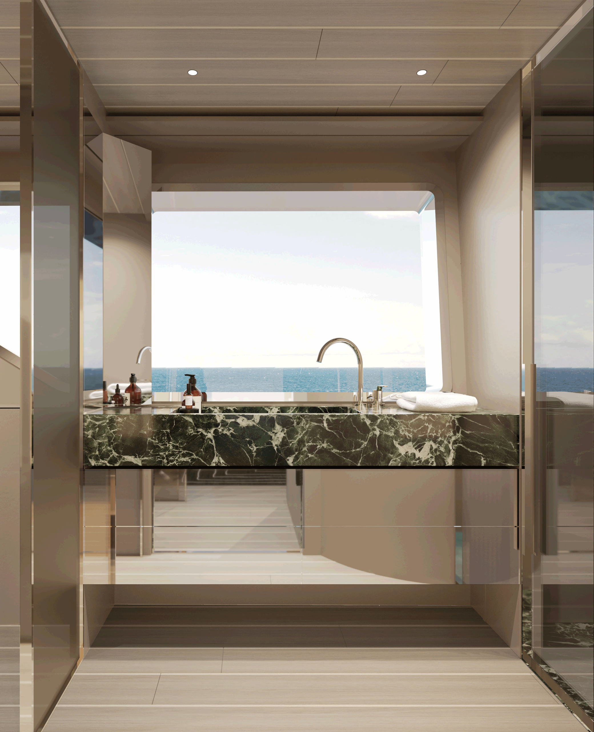 The enhanced crew quarters ensure discreet, top-tier professional service. Design, spaces, materials, every detail of the BGX83 is crafted to deliver maximum comfort and a yachting experience that rivals much larger vessels.